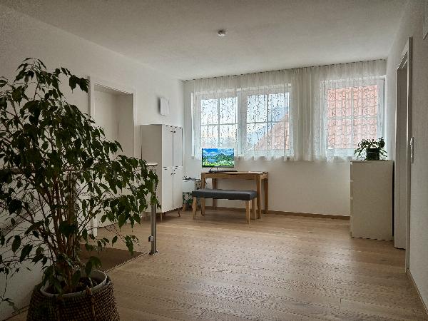 Im Erdgeschoss empfängt Sie ein einladender, großzügiger Eingangsbereich. Ein vielseitig nutzbares Gäste- oder Arbeitszimmer sowie das neu gestaltete Gäste-WC ergänzen das Raumangebot perfekt.